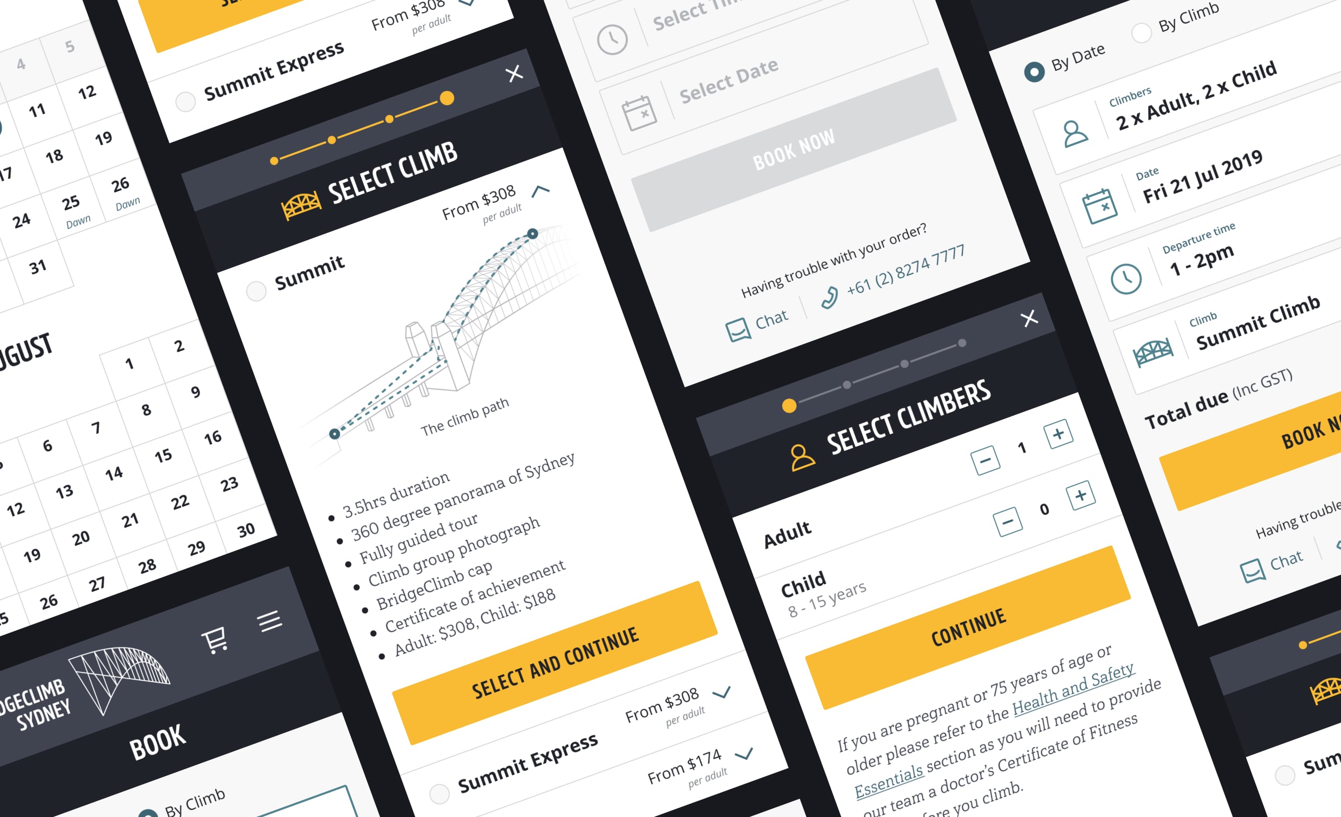Over 60% of users visiting BridgeClimb do so on a mobile device so we took a mobile-first approach and designed all the screens for mobile before doing Desktop designs. The results show that users now have a vastly smoother and streamlined process, particularly during the booking process which we work-shopped and refined through many iterations