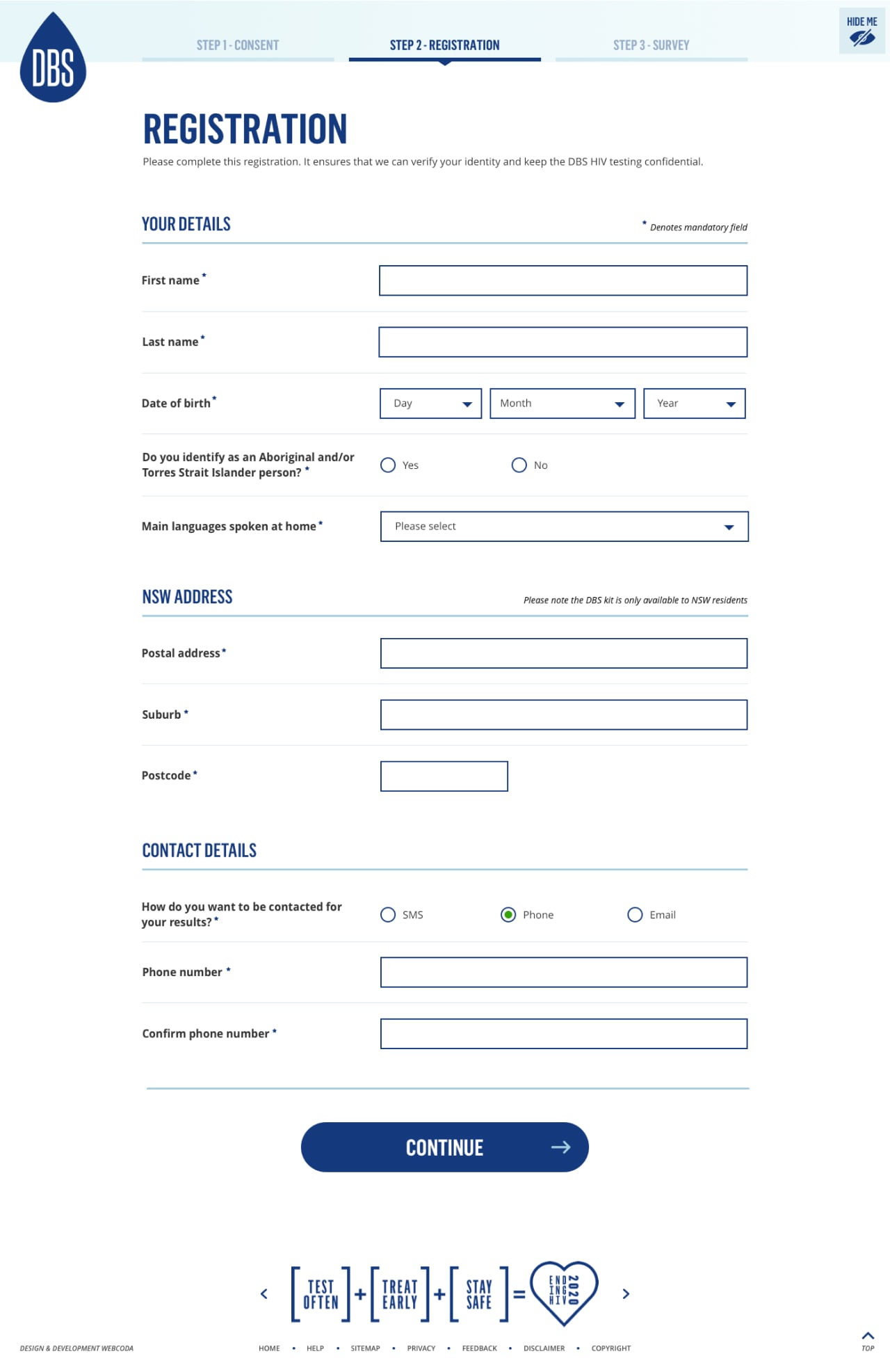 Webcoda designed a clean and simple, easy to use interface so site visitors can easily fill in their details and get home testing kit sent out them.