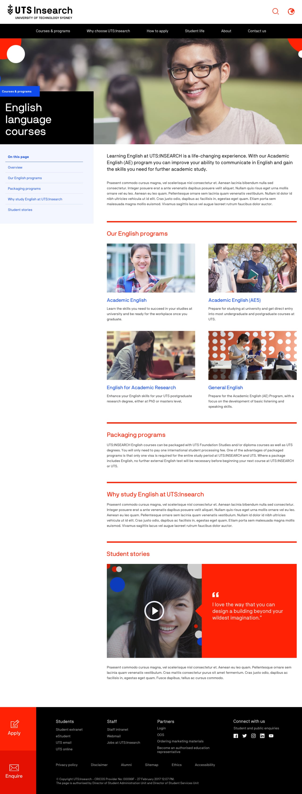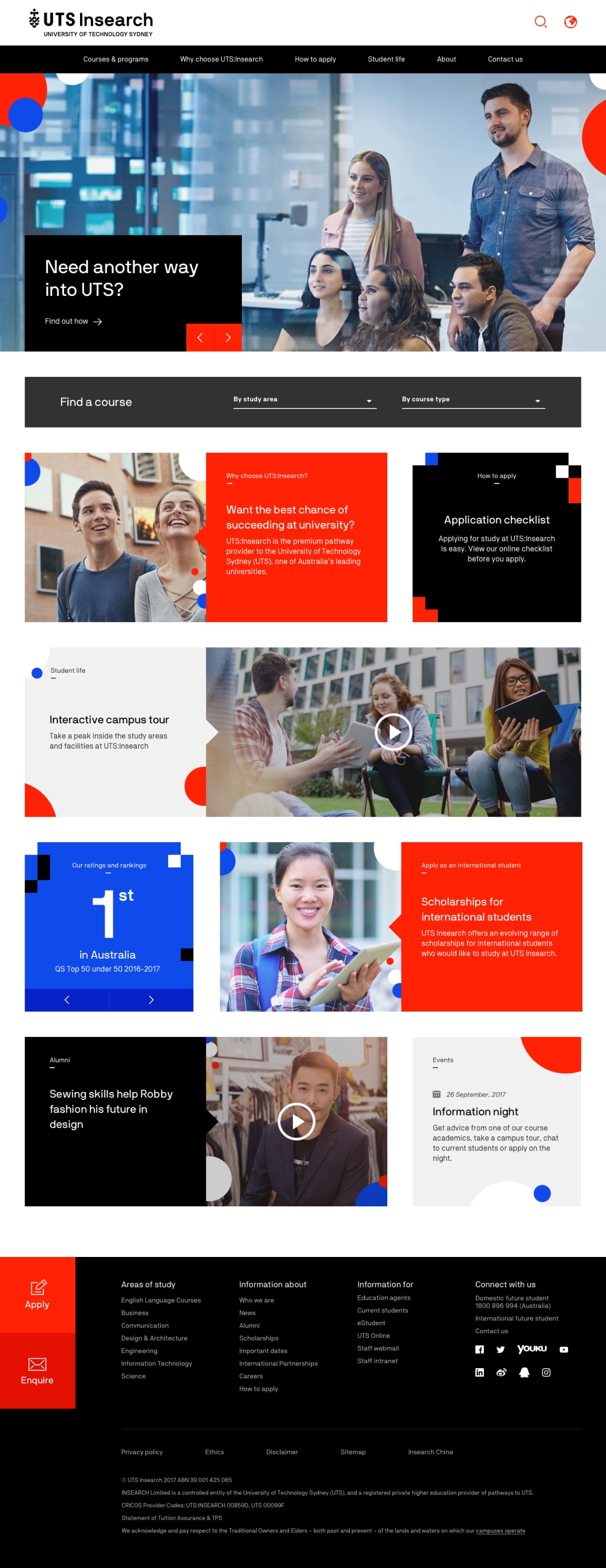 The UTS Insearch site is a flagship component of recruiting new students. As a recruitment tool, the website needed to cater to both domestic and international students. This required personalisation and multi-lingual capabailities.